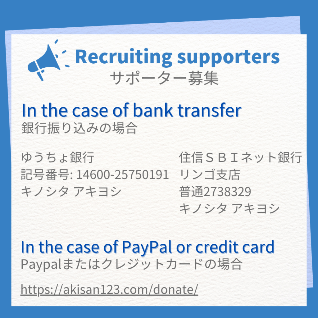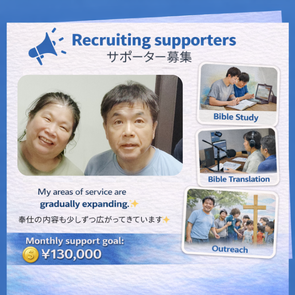 また、心に留めてくださる方がおられましたら、継続的なサポートを通して共に宣教に立っていただけたら嬉しいです。